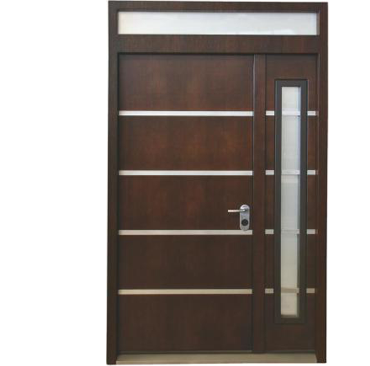 Constructie: modul metalic central realizat din 2 foi de tabla de otel zincata de 0.8 mm, cu protectii suplimentare de 3 mm in zona sistemelor de siguranta, cu ranforsari interioare in forma de 'zet', canturi faltuite ce confera o mare rezistenta intregului ansamblu, modul protejat cu grund reactiv anticoroziv,toc profilat din tabla de otel zincata de 1,5 mm, spuma poliuretanica injectata la interior ce asigura o buna izolare termica si fonica, si asigura comportarea usii ca un intreg, placi PANEL LEMN STRATIFICAT DE 14mm, VOPSIT CU PROTECTIE ANTI UV, cant exterior dintr-un profil special de aluminiu